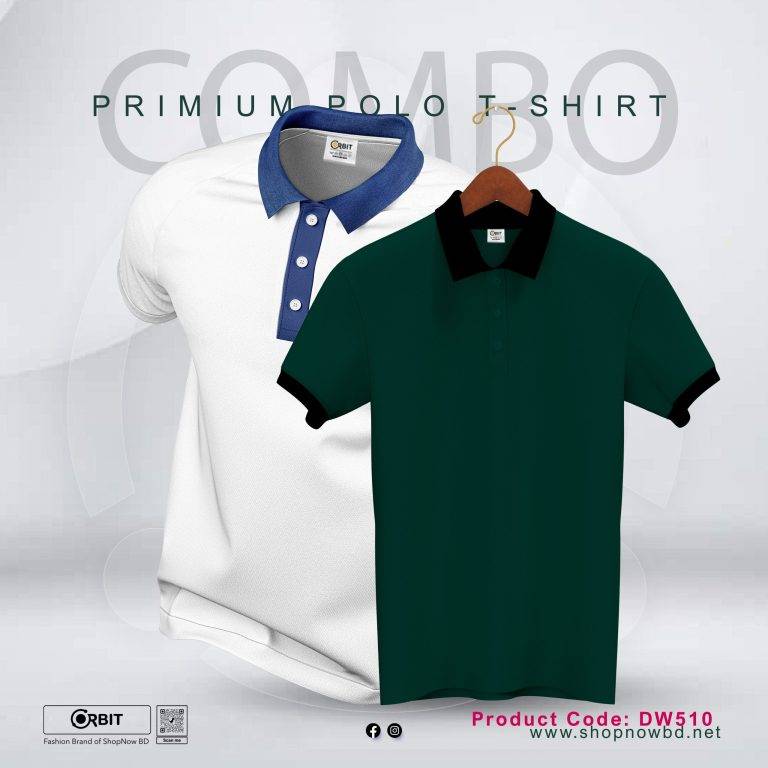 Cotton Combo Polo t-shirt ( Black + Bottle Green )